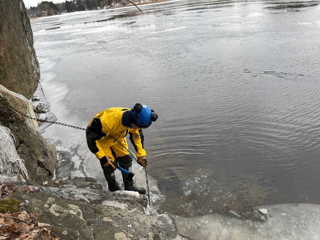 Selv når elver og innsjøer er dekket av is, fortsetter målingene. Vinterforhold gir krevende arbeidsdager med kulde, snø og is, men dette er en viktig periode for å samle inn data.